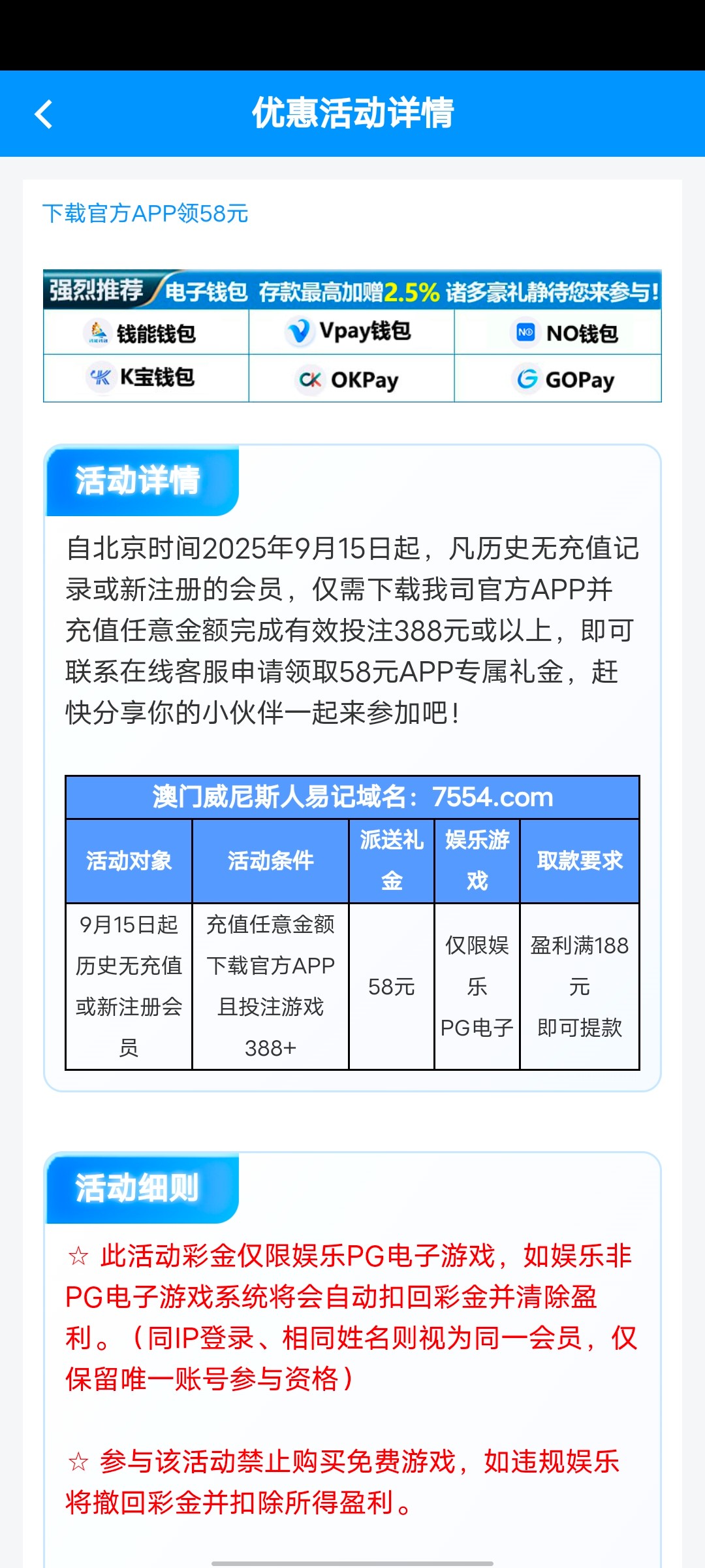 1.严禁任何目的充值行为 内容仅限用户撸羊毛