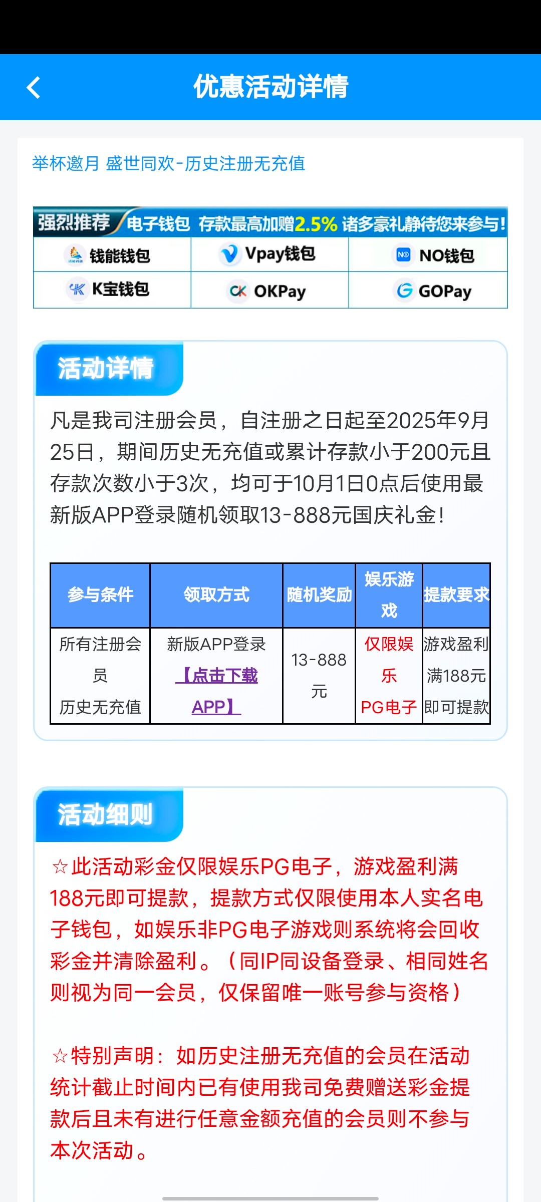 1.严禁任何目的充值行为 内容仅限用户撸羊毛